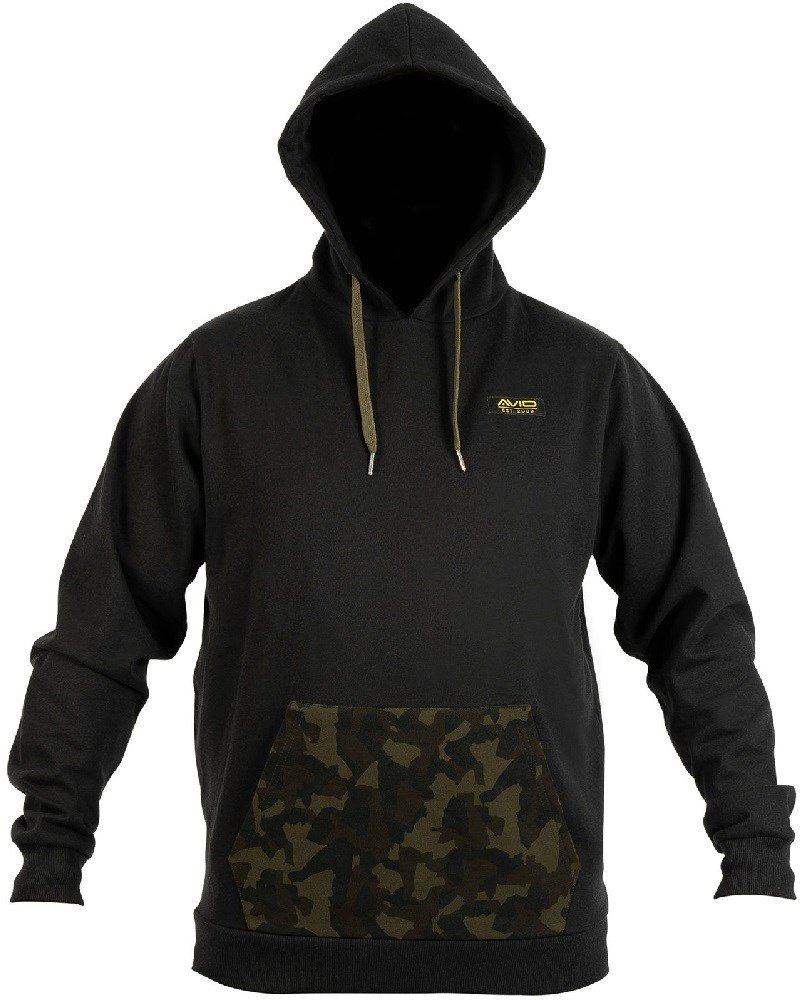 Černá mikina s kapucí a maskáčovou klokaní kapsou.• Žebrované manžety a dolní lem