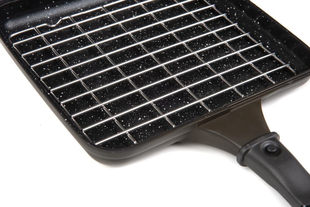 Součástí je mřížka z nerezové oceli omezující kontaktu připravovaných sladkostí a pizzy s povrchem pánve, omezuje tak jejich připálení.