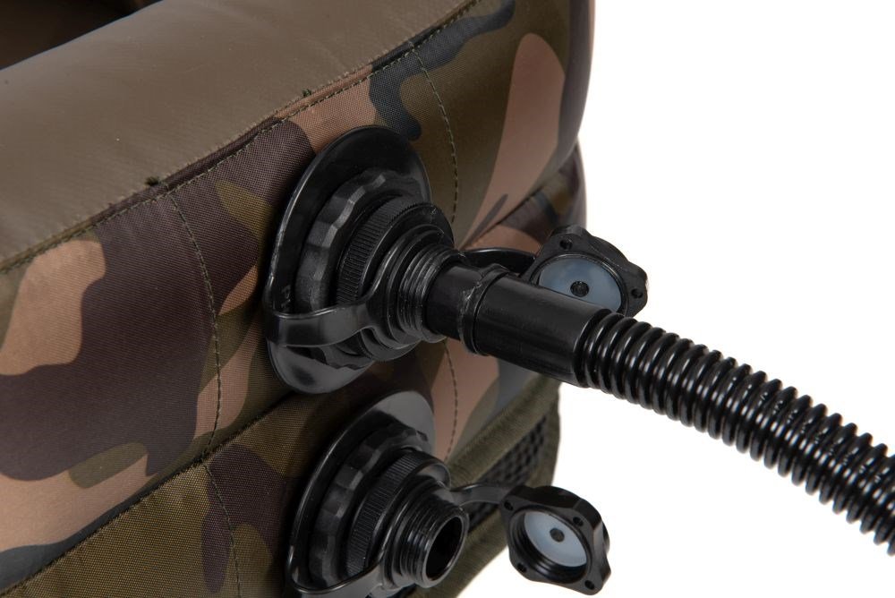 Oválná nafukovací podložka, navržená pro maximální ochranu ulovené ryby se svrchní polyesterovou látkou Fox camo.