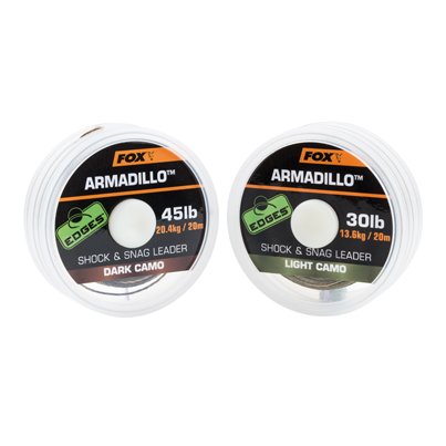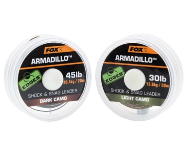 Edges Armadillo je vyroben z tkaného Dyneema vlákna a vytváří tak ultra odolnou a pevnou šňůrku pro použití na návazce nebo jako odhozovou šňůru. Vlastnosti: nahrazuje staré Fox Armadillo, navrženo pro použití na návazce nebo jako odhozová šňůra, ideální pro použití v zarostlých vodách plné vázek. K dostání ve světlém Camo a tmavém Silt provedení 20m.
