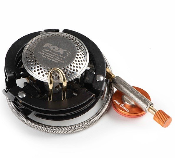 Kompaktní vařič od firmy Fox, který je dodáván v síťovém obalu.