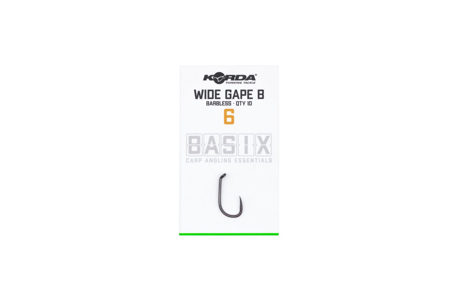 "Háček BASIX Wide Gape byl navržen jako dokonalý všestranný háček, který lze použít pro širokou škálu návazců a bez nutnosti přidávaní dalších komponentů- ať už lovíte nástrahy na dno, pop -ups nebo wafters. Agresivní tvar háčku zajištuje, že se velmi rychle stáčí a zasekává v kapří tlamce, aniž by bylo nutné přidávat rovnátko Kickers nebo smršťovací hadičku. Je vyráběn v zesílené verzi kterou znáte u našich jiných typů háčku s označením „X“, takže je vhodný pro použití prakticky kdekoliv, díky teflonové úpravě je tento háček velmi nenápadný. Tento háček byl navžen tak aby jeho ostrost byla dlouhodobá a vydržel bezproblémů několik ryb, bez nutnosti okamžité váměny – doporučujeme však vždy háčky po záběru kontrolovat a pokud nejste spokojeni , vyměnte jej. Tento háček vychází z konceptu legendárního háčku Wide Gape, díky kterému se nachytalo bezpočet velkých kaprů. BASIX Wide Gape jsou k dispozici ve verzich s protihrotem ale i bez protitrotu, jsou dostupné ve velikostech 2, 4, 6 a 8. Balení obsahuje deset háčků."
