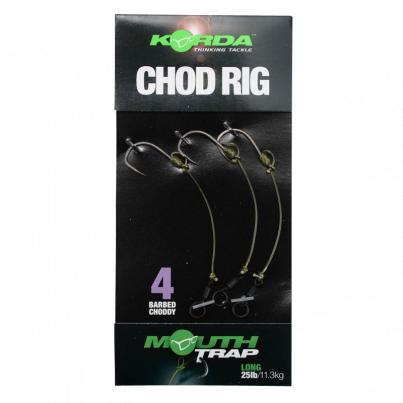 Hotové návazce Chod Rigs jsou opravdu dokonalé. Team Korda si nebyl jistý zda jeho zákazníci správně používají Chod Rig, proto přišel z hotovými návazci. Každý návazec je vázán podle náročných standardů, za použití stejných uzlů které Danny používá pro své vlastní montáže. To znamená že každý návazec byl sestaven pomocí Dannova speciálního uzlu, který poskytuje bezkonkurenční pevnost a umožňuje uzlu sedět perfektně na háčku. A co víc, k dispozici jsou dvě verze Chod Rigs, short (kratší) nebo long (delší) verze. Takže pokud se vám líbí krátký Chod Rig tak jako Darrell Peck’s nebo chcete delší jako je oblíbená verze pro Adama Penninga je jen na vás. Všechny návazce jsou vázány na Korda Mouth Trap, který je dokonale tuhý a okamžitě se postaví nad všechny ostatní Chod montáže na trhu, prostě proto že je to nejlepší funkční tuhý materiál všech dob. Pokud se váš Chod Rig zdeformuje během zdolávání kapra, jednoduše ho vypracujete do původního tvaru. Chod Rig jsou vázány na spolehlivých háčcích Korda Choddy nedo Choddy barbless (bez protihrotu) což zaručuje dokonalé držení háčku. Návazce jsou dodávány v balení po 3ks.
