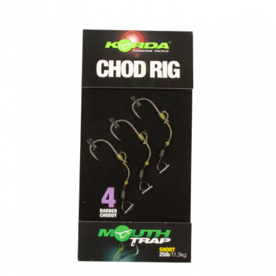 Hotové návazce Chod Rigs jsou opravdu dokonalé. Team Korda si nebyl jistý zda jeho zákazníci správně používají Chod Rig, proto přišel z hotovými návazci. Každý návazec je vázán podle náročných standardů, za použití stejných uzlů které Danny používá pro své vlastní montáže. To znamená že každý návazec byl sestaven pomocí Dannova speciálního uzlu, který poskytuje bezkonkurenční pevnost a umožňuje uzlu sedět perfektně na háčku. A co víc, k dispozici jsou dvě verze Chod Rigs, short (kratší) nebo long (delší) verze. Takže pokud se vám líbí krátký Chod Rig tak jako Darrell Peck’s nebo chcete delší jako je oblíbená verze pro Adama Penninga je jen na vás. Všechny návazce jsou vázány na Korda Mouth Trap, který je dokonale tuhý a okamžitě se postaví nad všechny ostatní Chod montáže na trhu, prostě proto že je to nejlepší funkční tuhý materiál všech dob. Pokud se váš Chod Rig zdeformuje během zdolávání kapra, jednoduše ho vypracujete do původního tvaru. Chod Rig jsou vázány na spolehlivých háčcích Korda Choddy nedo Choddy barbless (bez protihrotu) což zaručuje dokonalé držení háčku. Návazce jsou dodávány v balení po 3ks.
