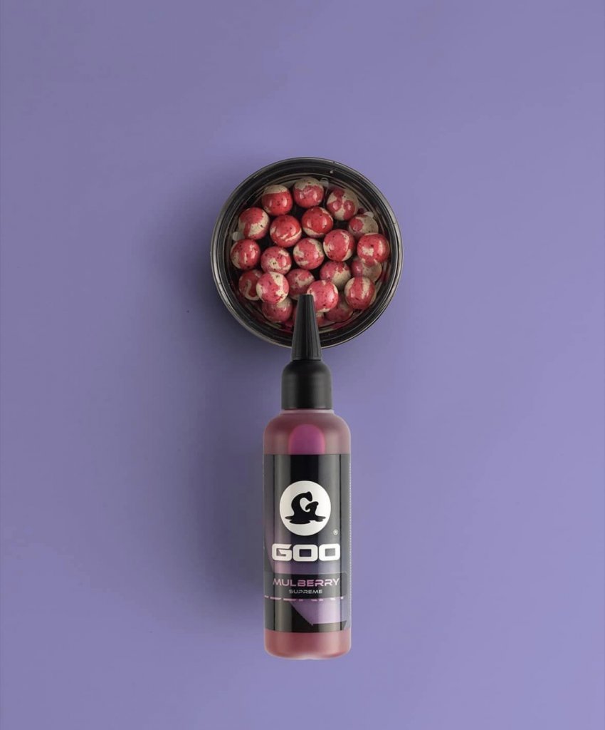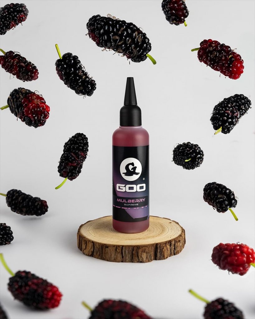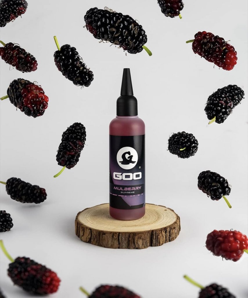 Mulberry Supreme Goo je bohatá a uspokojivá fialová barva, která odráží ovoce, na kterém je chuť založena. Vytváří jemný fialový odstín ve vodě a změní barvu vaší nástrahy, když se vsákne, čím více ji necháte nasáknout, tím je intenzivnější. Jelikož se jedná o variantu „Supreme“, má řidší konzistenci, která mu umožňuje vsáknout se do jádra nástrah na háček a/nebo dokonale zakrýt volné krmivo.