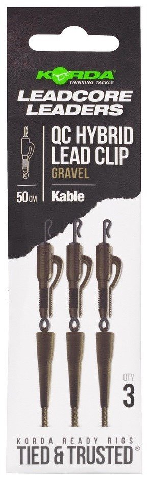 Korda Kable Leadcore Leader Hybrid Lead Clip QC Swivel Gravel 50cm 3ks