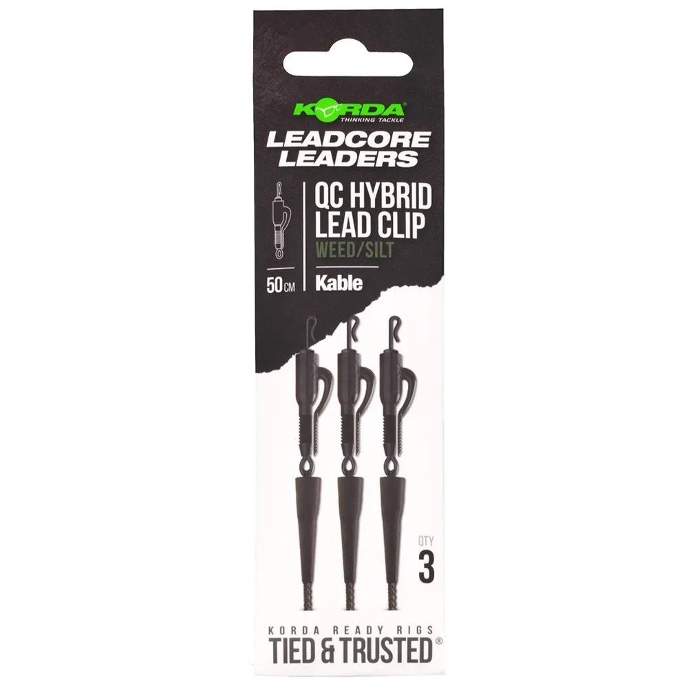 Korda Kable Leadcore Leader Hybrid Lead Clip QC Swivel Weed 50cm 3ks