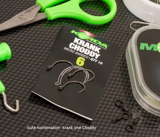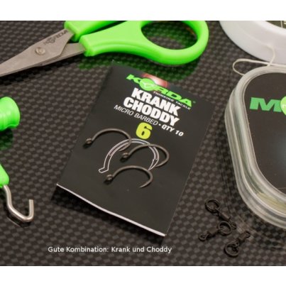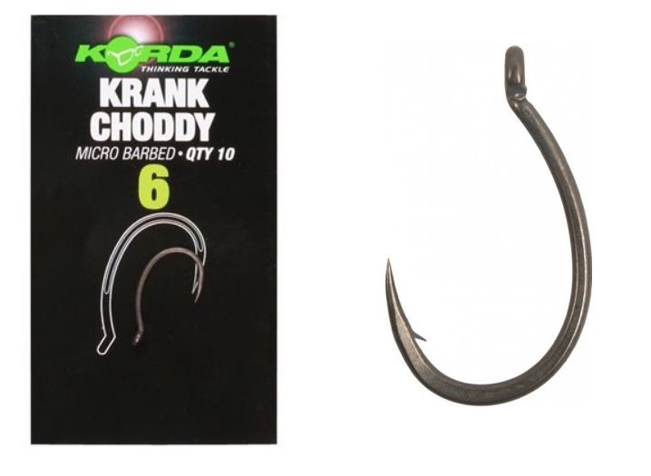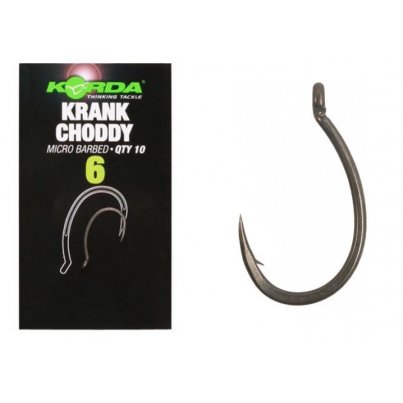 Korda háčky Krank ChoddyKorda háčky Krank Choddy - Nedlouho poté, co se na trh dostaly dnes už velmi populární háčky Krank, začal jejich tvůrce přemýšlet o jejich úpravě, která by se hodila i na specifické druhy montáží... Jelikož chytání s tuhými návazcovými materiály ať už Chod Rig, nebo jiné varianty, je stále populárnější a úspěšnější, rozhodl se Tom Dove vyhnout očko u těchto háčků směrem ven. A výsledek je excelentní. Nejlepší chodové háčky, jaké byly kdy vyrobeny! Jsou ideální hlavně k prezentaci plovoucích nástrah, ale vynikající jsou i v kombinaci s celoztuženým návazcem k nastražení klasické těžké nástrahy