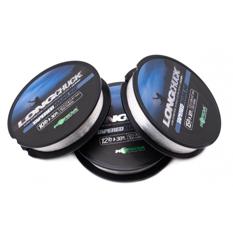 Long Chuck Tapered Mainline byl navržen pro lov na odhoz v situacích, kdy chcete lovit bez spojovacího uzlu - obzvláště užitečné ve velmi zarostlých místech ( vodní tráva), kde se může zachytit v očkách prutu a hrozila by tak zbytečná ztráta ryby. Long Chuck Tapered Mainline je dodáván na 300m cívce a na každém konci je vybaven 8m sekcí o průměru 0,47 mm (30 lb), která je navržena tak, aby ,vydržela sílu náhozu - a také nabízí dobrou odolnost proti oděru při lovu kaprů například na štěrkových lavicích - plus 2m zužující se části která plynule přechází v průměr kmenového vlasce který jste si zvolili. To stejné najdete i na druhém konci vlasce, takže pokud dojde k poškození, můžete jednoduše ,,obrátit“ vlasec na cívce a použít jej znovu nepoškozený. Ujímané vlasce disponují ultra nízkou průtažností, díky čemuž se dostane prut do rychlé komprese (,,měkké“ monofilní vlasce je obvykle docela pružné a snižují efektivitu náhozu) -nízká absorpce vody; -jedná se o velmi ,,lehký“ vlasec i přes své vlasnosti a nosnost, zůstává díky tomu ve vzduchu déle. Dodává se v průměru 10lb-30 lb (0,27-0,47 mm); 12lb-30 lb (0,30-0,47 mm); a 15lb-30 lb (0,33-0,47 mm)."| Název | Dostupnost | Cena / ks | Počet kusů |