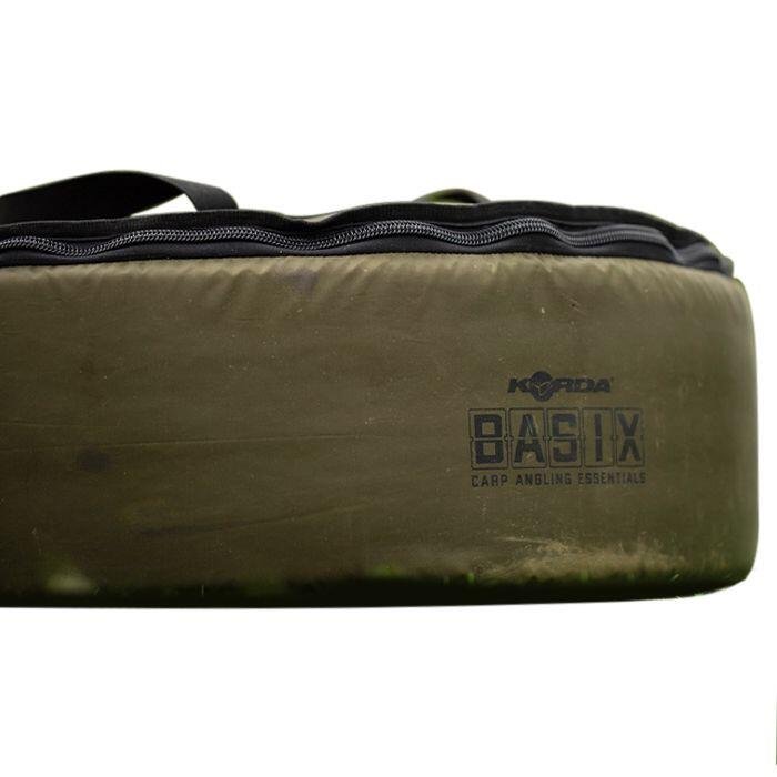 Polstrované stěny pomáhají zajistit, aby váš úlovek zůstal v bezpečí a uvnitř podložky. Když se Basix Carp Cradle nepoužívá, složí se na dvě části a uvnitř je prostor pro uložení Carp Care Kit a Basix Weigh Sling. Držadla na přenášení lze také použít k přichycení pomocí kolíku k zemi.