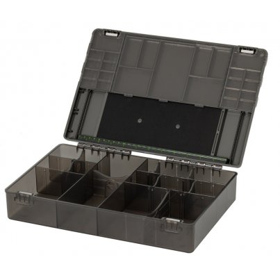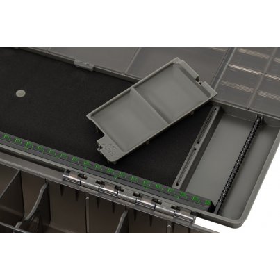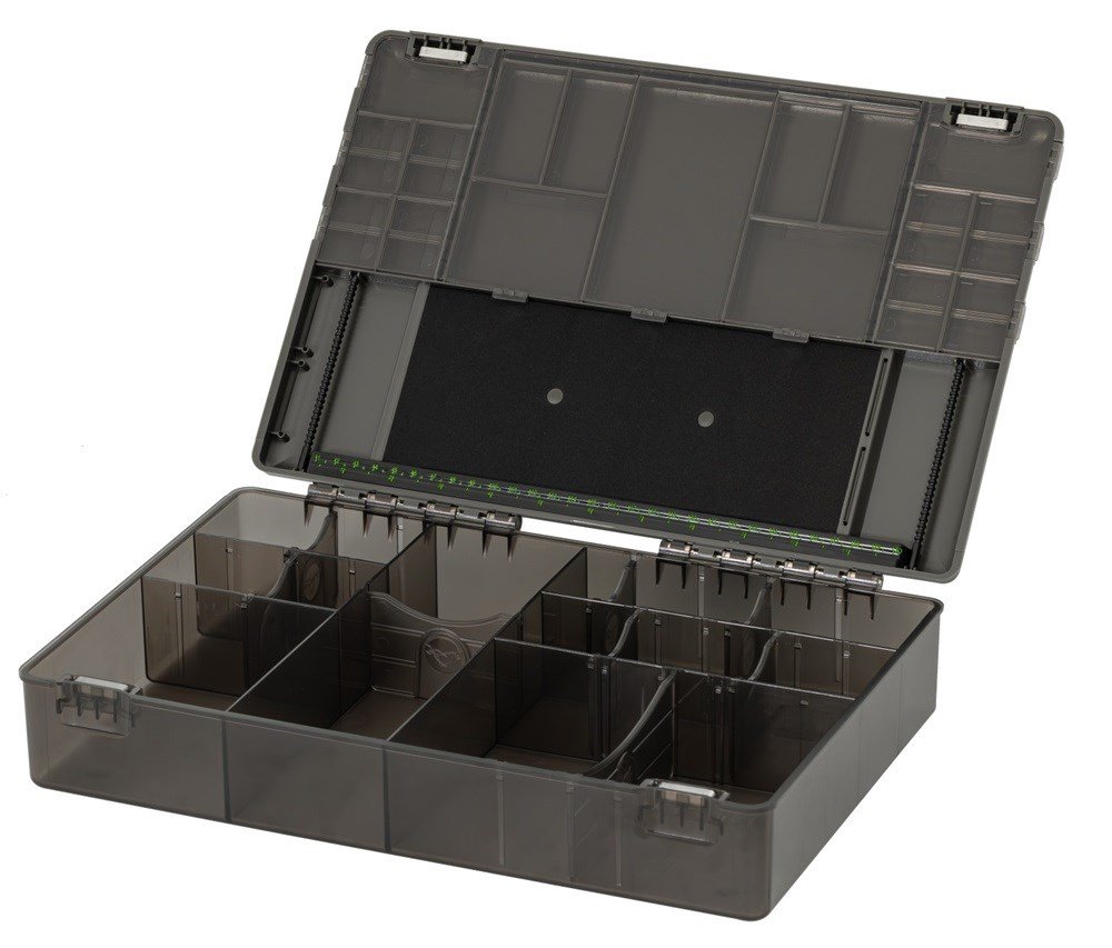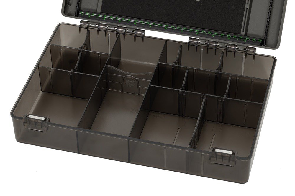 Trvalé stěny v boxu na náčiní jsou rozmístěny tak perfektně, aby se do nich vešly naše návazcové šňůrky, Sady krabiček, Bait Floss, Leadcore, Arma Kord, Leader Safe pouzdro a krabičky Kamakura háčků spolu s dalšími předměty, jako jsou nůžky a jehly.
