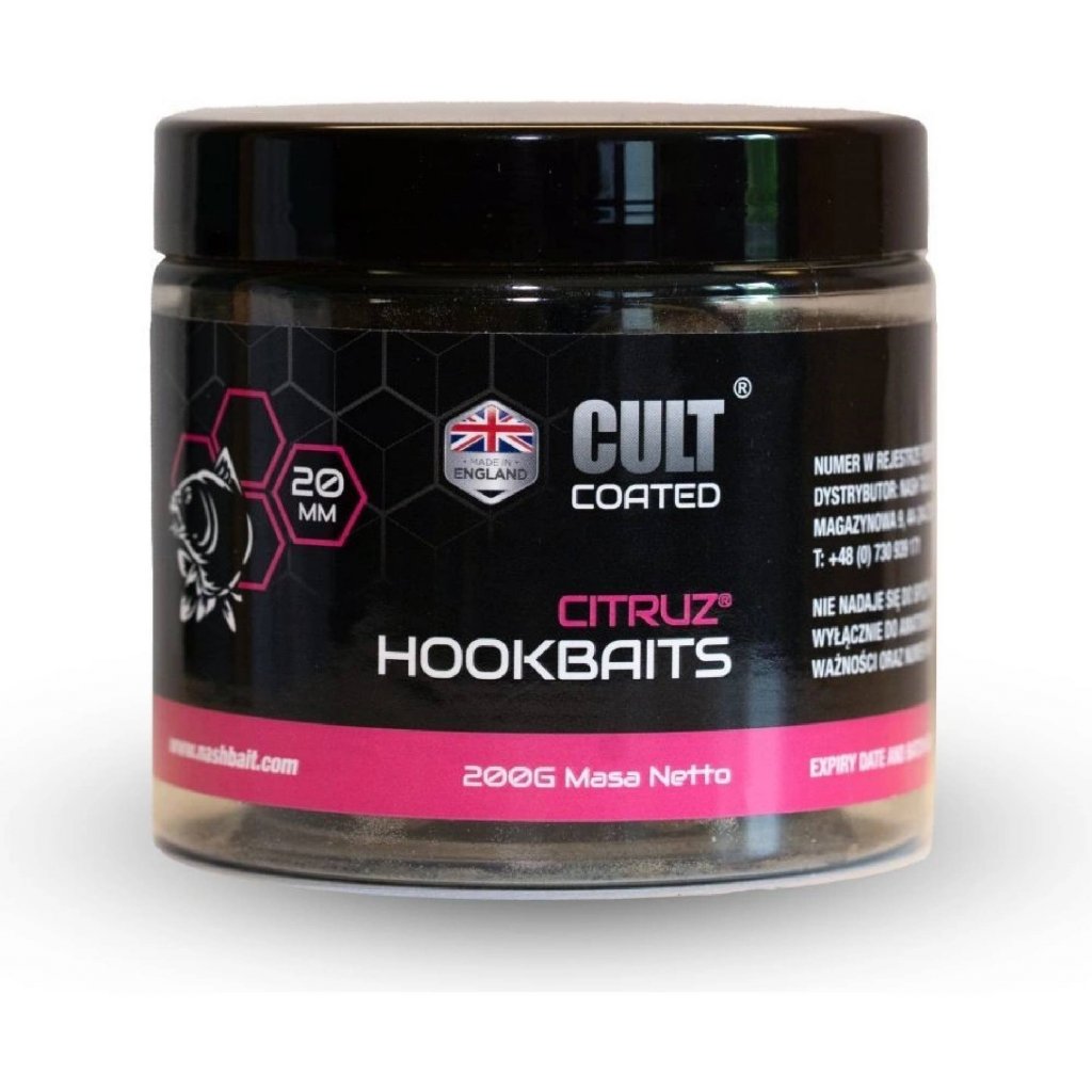 Vrstvený boilies jedinečnou Nashbait living Culture pastou, která je napuštěna extrémně účinnými atraktory Citruz.Pasta nástrahy Cult Coated Hookbaits se pomalu rozpouští a zaručuje maximální možnou atraktivitu nástrahy.