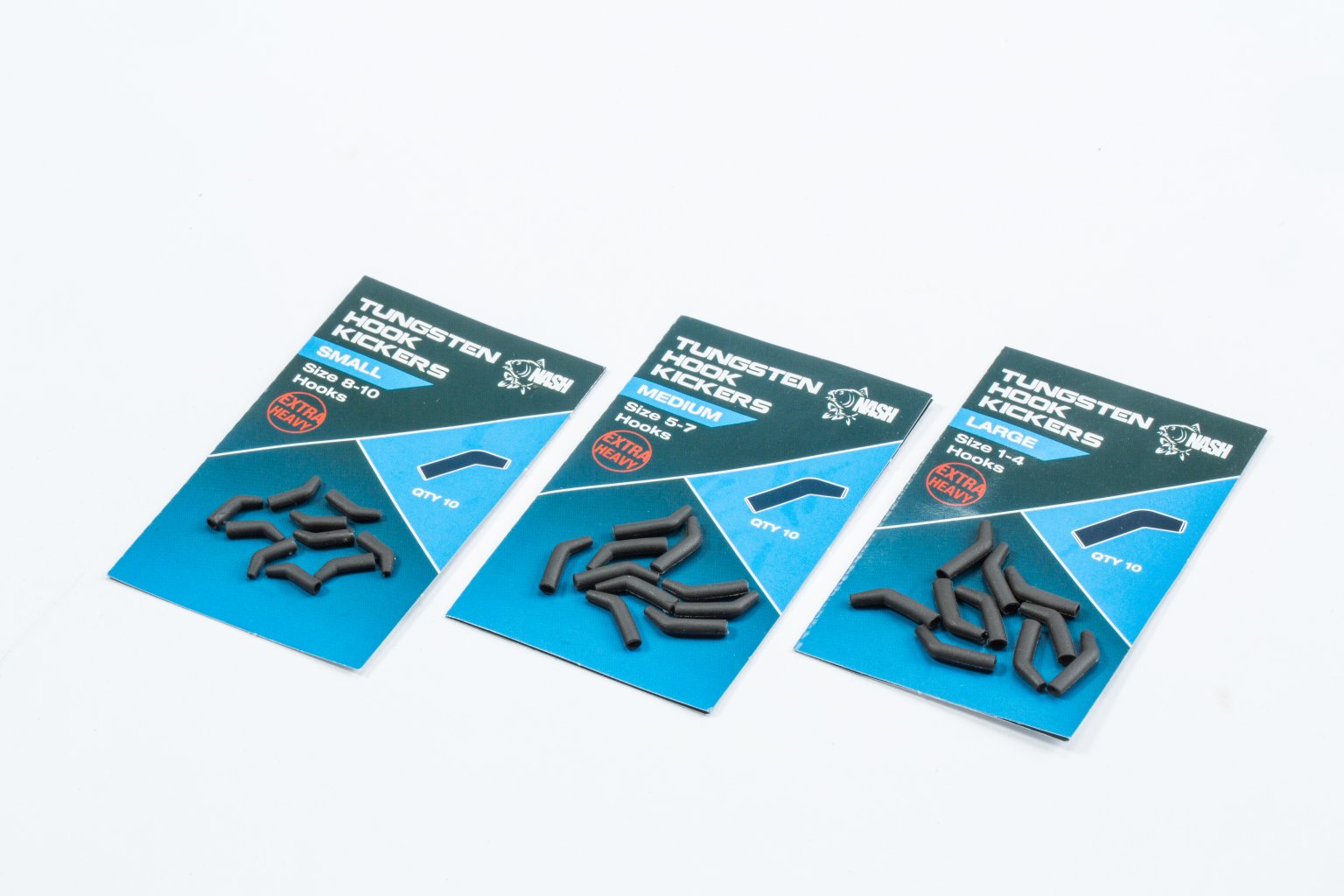 Tungstenová rovnátka na háček, extrémní úhel pro zaručení správného otočení háčku při záběru. Ve třech velikostech pro různé velikosti háčku, 10ks v balení.