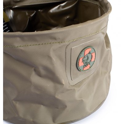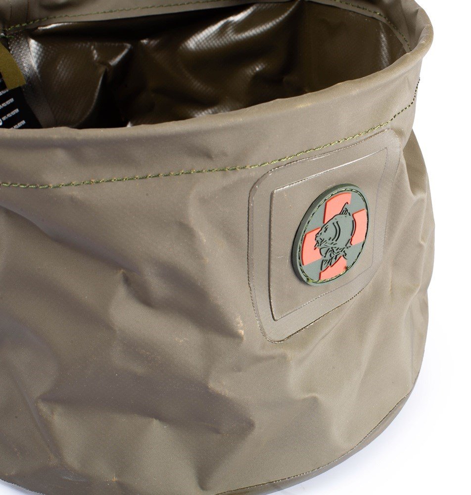 Praktická, extra pevná, ale lehká skládací nádoba na vodu Carp Care, která má svařené švy a našitý popruh.Aby byla zaručena stálost tvaru, když je nádoba naplněna vodou, nádoba má na jejím vrchu kovový kroužek. 1,5 metrová šňůra, která je odolná proti kroucení, umožňuje snadné spouštění a plnění nádoby ze strmých břehů. Šňůra je upevněna na karabině, takže když nebudete šňůru potřebovat, snadno ji lze odepnout. Skvělá vychytávka pro udržení mokrého kapra na břehu při focení, nebo může také sloužit i jako nádoba na vyzkoušení mechaniky návazce.