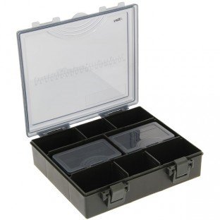 Nová vylepšená verze rybářského boxu ideální nejen pro kapraře. Box je vyrobený z vysoce kvalitního tvrzeného plastu v tmavě zelené barvě a víko v kouřově černé barvě. Box má velice spolehlivý zacvakávací mechanizmus zavírání díky kterému vám z boxu nikdy nic nevypadne. Součástí jsou odjímatelné přihádky a 4 krabičky na bižuterii.Obsah boxu:
