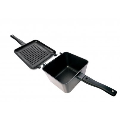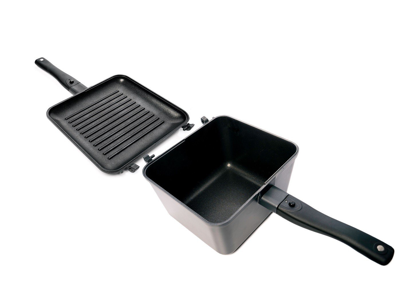 Špičkový fluoropolymerový povrch poskytuje bezkonkurenční nepřilnavé vlastnosti a hranatý tvar a odnímatelné držadla umožňují snadné skladování v jakékoli situaci. Kromě toho jsou hluboká pánev i mělká grilovací pánev plně kompatibilní s našim Connect Compact Toasterem XL, což vám otevírá ještě velké množství dalších možností!