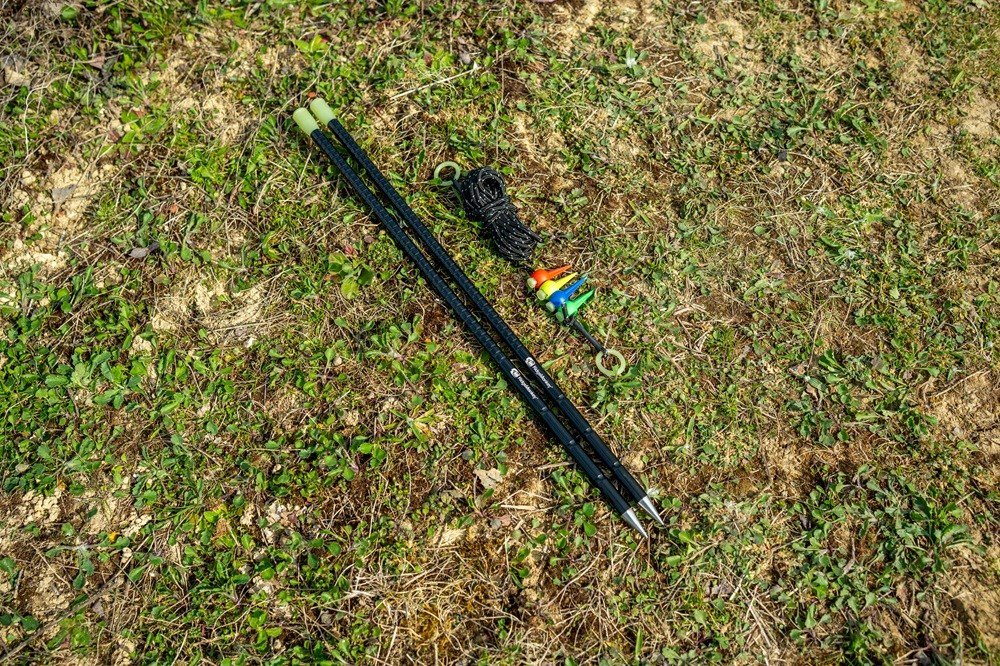 Na vrchu vidliček jsou samosvítící krytky Nite Glo. V balení také nalaeznete měřicí šňůru Hi-Vis a 4 kusy jednotlivých hrotů Nite Glo Marker Sticks. To napomáhá snednému najití všech komponentů a možnosti namotání i více prutů a to i za slabého osvětlení. s