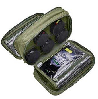 Oboustranné pouzdro pro návazce a návazcové materiály umožňuje snadný přístup k Vaší kaprařské bižuterii a zjednodušuje organizaci díky čirým vnitřním kapsám.Cívky na suchý zip jsou ideální pro uchovávání zig-rigů nebo návazců pro rybaření z hladiny. Na druhé straně naleznete EVA desku a formovanou příčku pro uchycení háčků. Hi-Viz kolíčky zajistí, že Vaše návazce budou vždy rovné, napnuté a zároveň pěkně srovnané.