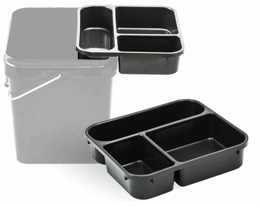 Praktická tříkomorová vložka určená pro přehledné uložení příslušenství, návnad a krmení.Díky lisované rukojeti se snadno vyjímá a její velikost je vhodná pro většinu 17L kbelíků.